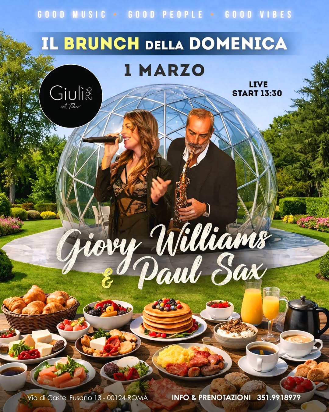 DOMENICA 1 MARZO BRUNCH Salato & Dolce Giulì al Tiber 296 LIVE MUSIC 13…