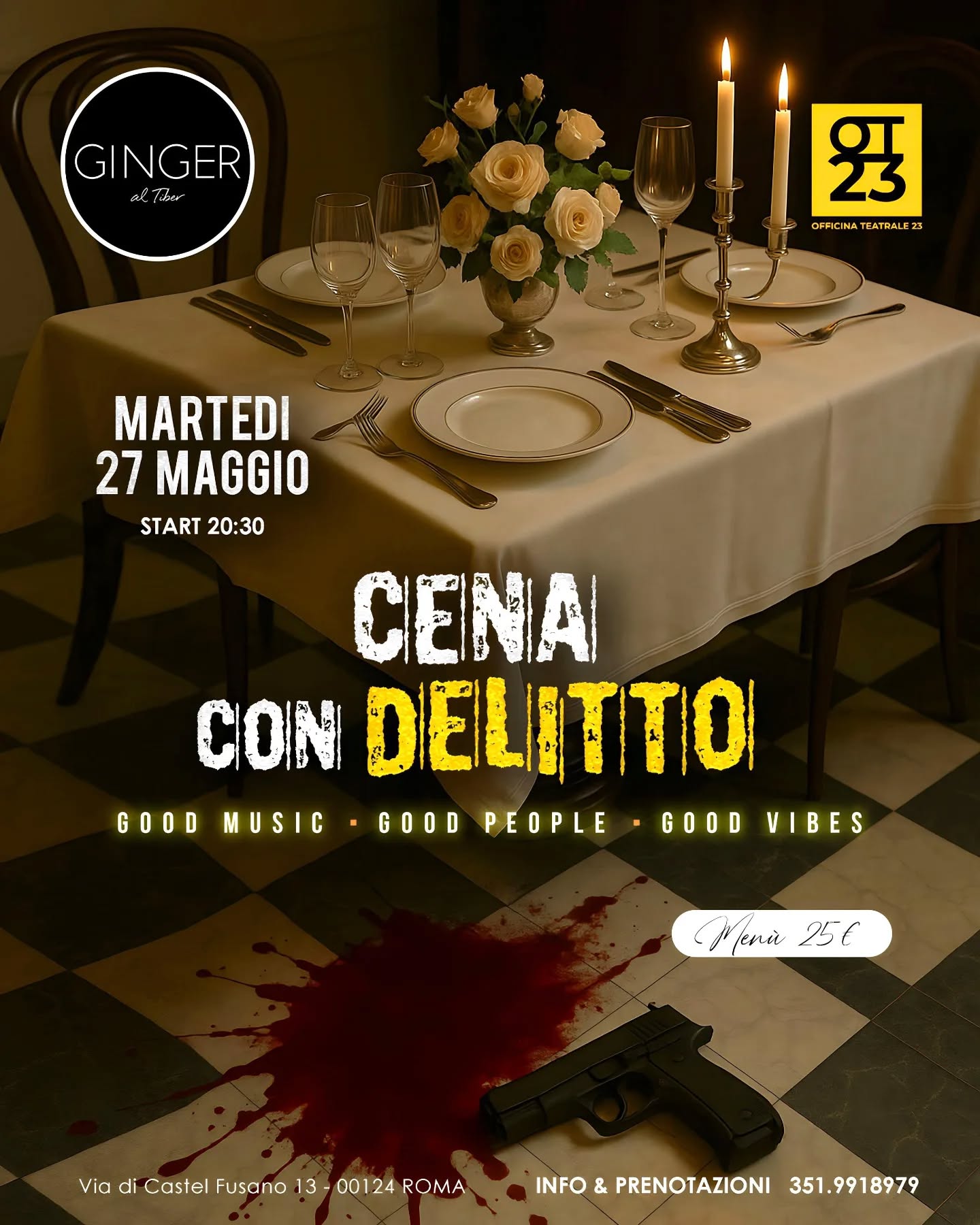 #cena #apericena #martedì #cenacondelitto #delitto #giallo #teatro #cenaspettacolo #ostiaantica #ostia #dopocena #roma #tiber #ginger #gingeraltiber #k #dj #music #kevin #livemusic #live #drink #birra #smile #sillumina
