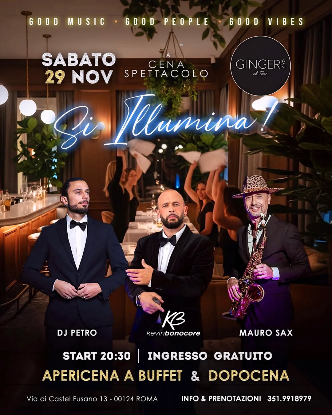 SABATO 29 NOVEMBRE GINGER al Tiber Si Illumina! CENA SPETTACOLO Ke…