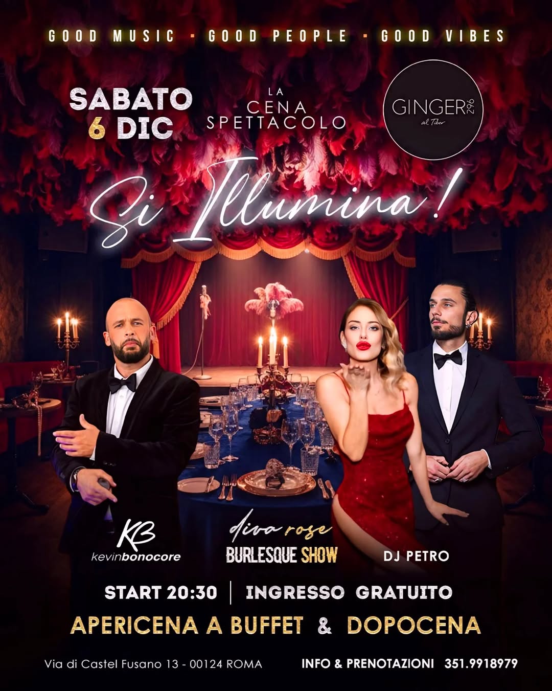 SABATO 6 DICEMBRE GINGER al Tiber Si Illumina! BURLESQUE CENA SP…